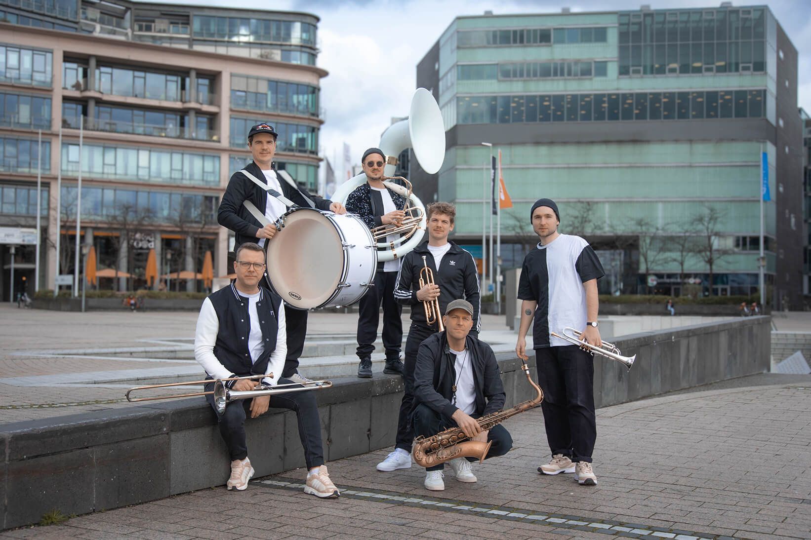 Inspirierend, kraftvoll, einzigartig: Die Sinfonia Brass Band setzt Maßstabe für Walking Acts und Bühnen Performances. Mit einem dynamischen Sextett aus Saxophon, zwei Trompeten, Posaune, Sousaphon und einem erstklassigen Drummer bringt die Band kraftvolle Blasersounds, die Ihre Veranstaltung bereichern. Das Sousaphon sorgt dabei fur einen unverwechselbaren Klang und eine markante visuelle Prasenz. Ob als Walking Act oder Bühnen- Highlight – die Sinfonia Brass Band entfacht mit ihrem lebendigen Auftritt eine beeindruckende Energie. Mit Interpretationen wie „Freed from Desire“ und „Fly Me to the Moon“ sowie Hits von Dua Lipa und Beyonce verleiht die Band zeitlosen Klassikern einen modernen, dynamischen Klang.
